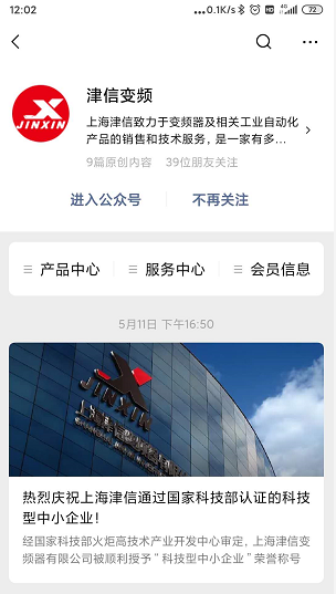 津信變頻微信公眾號推出以來,一直得到廣大用戶的歡迎和好評,用戶不但可以從微信公眾號獲得豐富的產品和技術信息,還可以獲得及時的在線服務。